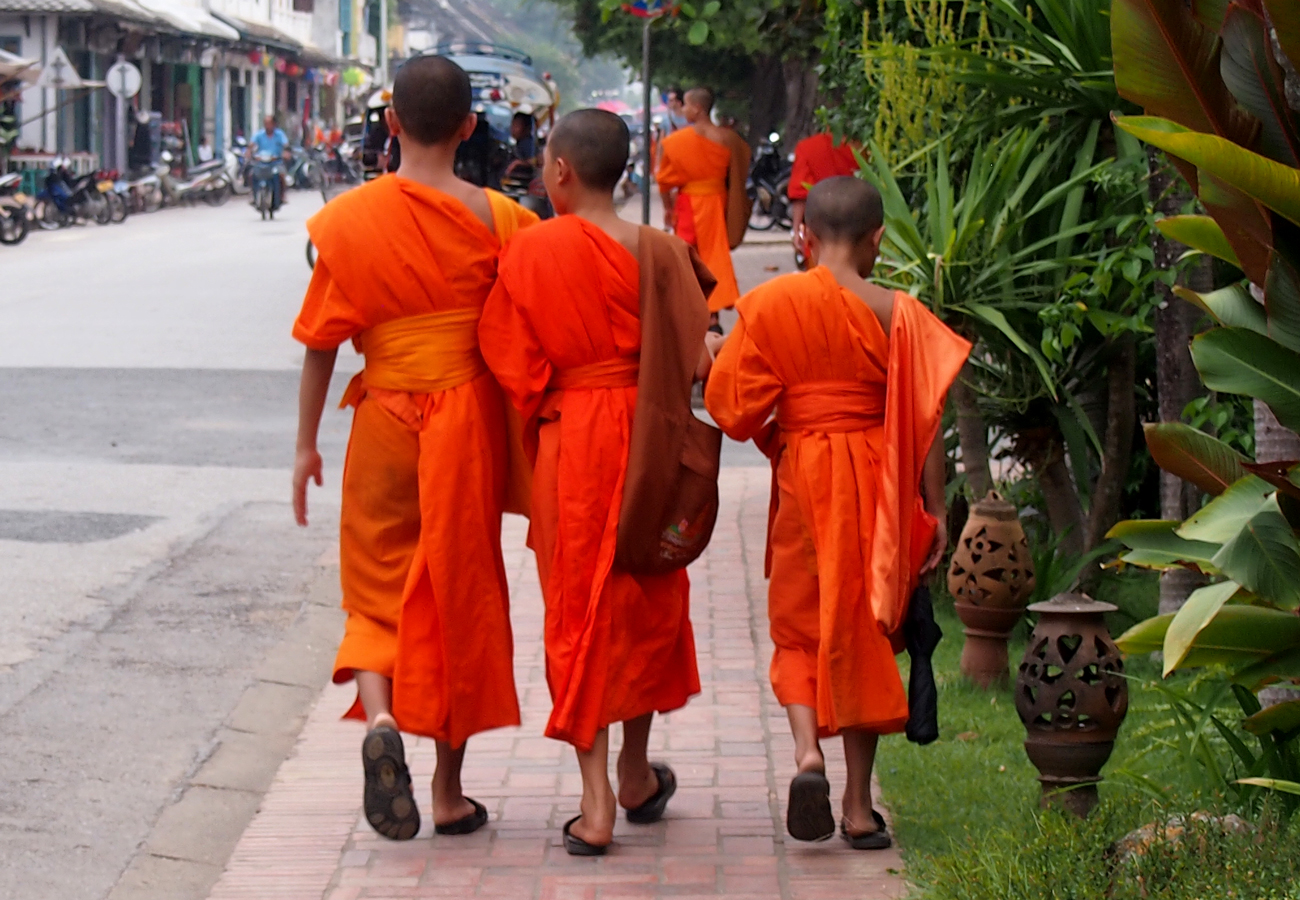 Seeing the early morning monk procession and giving alms